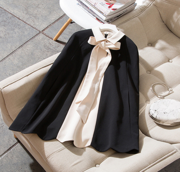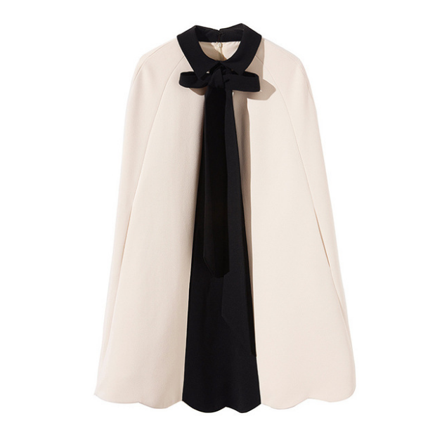 霓潮新款秋冬女装精品斗篷0花边飘带撞色显瘦气质外套披肩