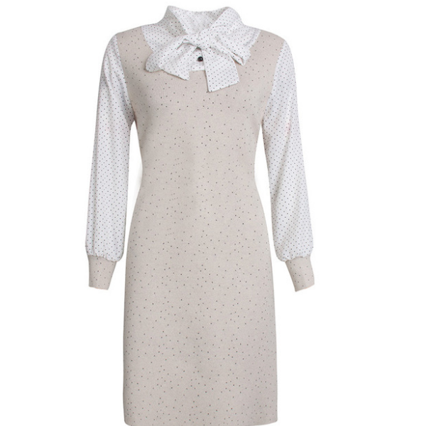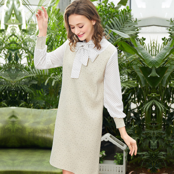 早春新品假两件针织裙雪纺拼接中长款连衣裙C8560