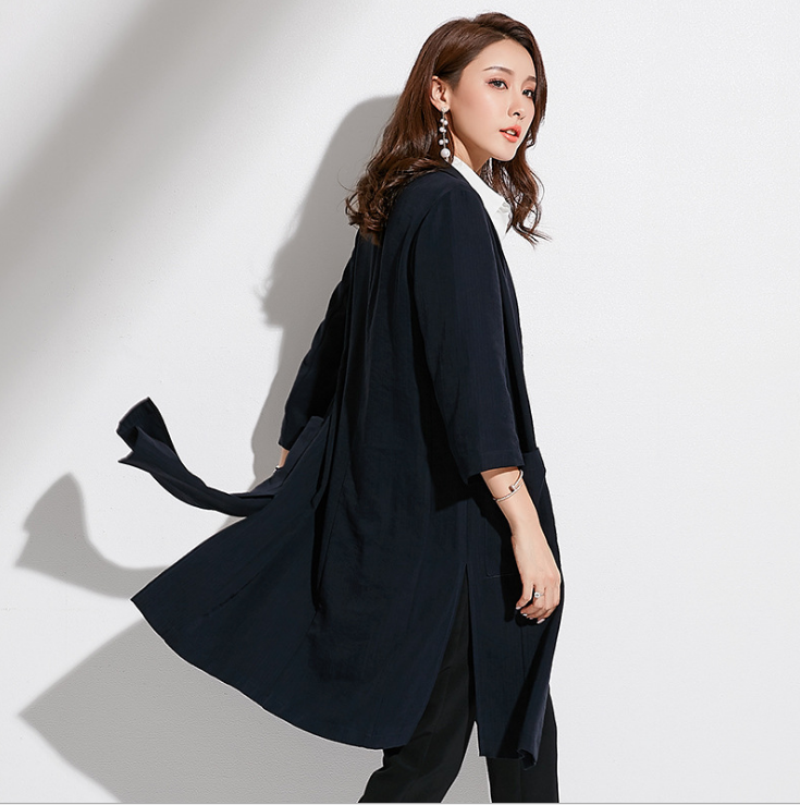 秋季新款品牌女装中长款西装领外套系带长袖显瘦女式风衣女