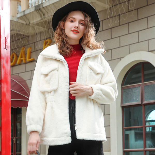 冬季新款长袖翻领小兔貂时尚外套L3215