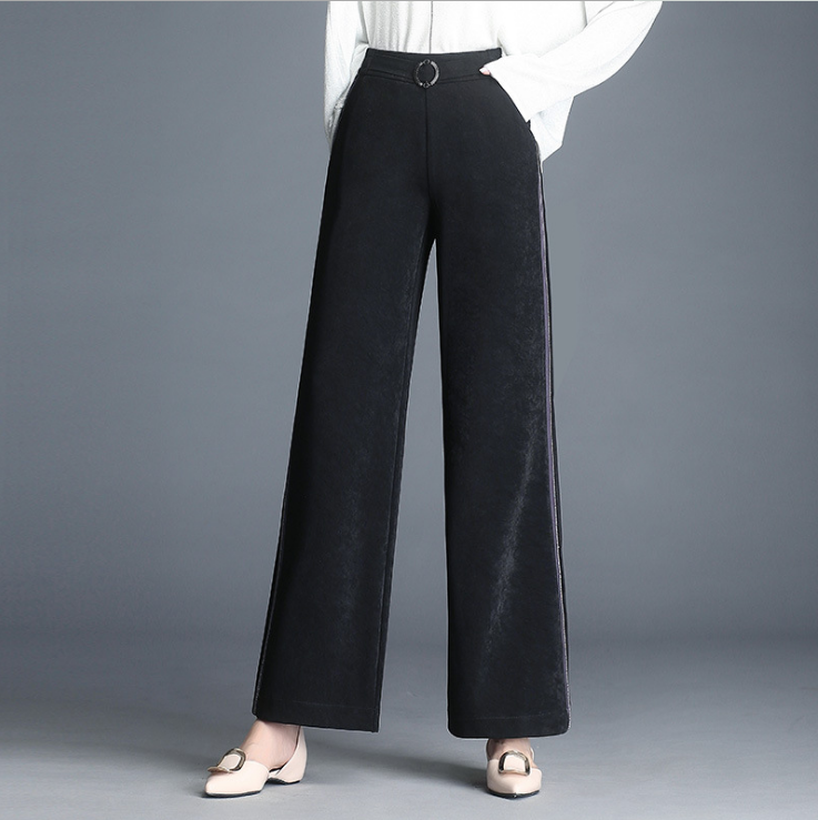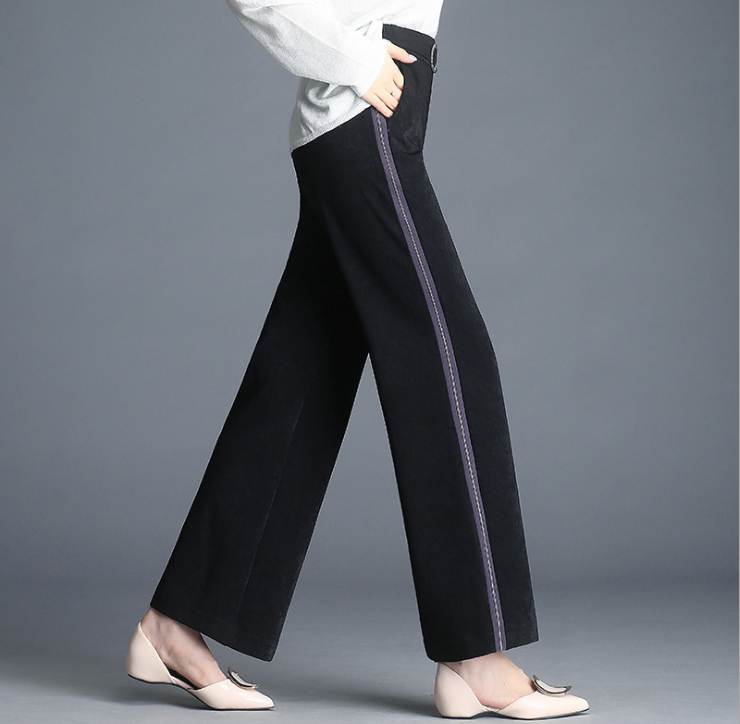 秋季新款侧条纹阔腿裤女运动长裤高腰修身显瘦休闲长裤 2条装