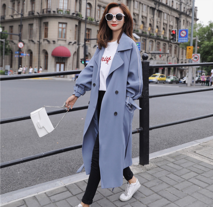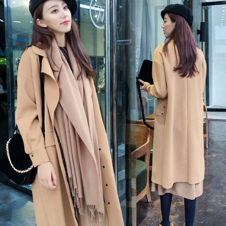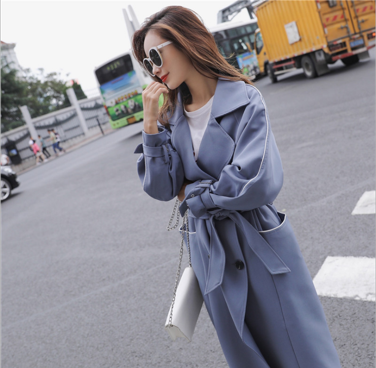 风衣女中长款秋装新款春季韩版气质时尚薄款休闲百搭过膝外套 2件