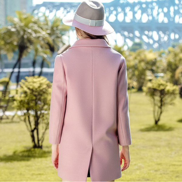 秋冬新款韩版气质西装领呢子大衣龙凤呢中长款毛呢外套M3501